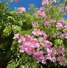 La Podranea ricasoliana, comunemente chiamata bignonia rosa o Contessa Sara, è una rampicante vigorosa e a crescita rapida con portamento sarmentoso e flessibile. È caratterizzata da un fogliame verde brillante e una profusione di fiori a forma di trombetta di colore rosa chiaro, venati di rosso, che sbocciano dalla tarda primavera all'autunno. Può essere coltivata per ricoprire pergolati e ringhiere, oppure può formare grandi cespugli ricadenti.