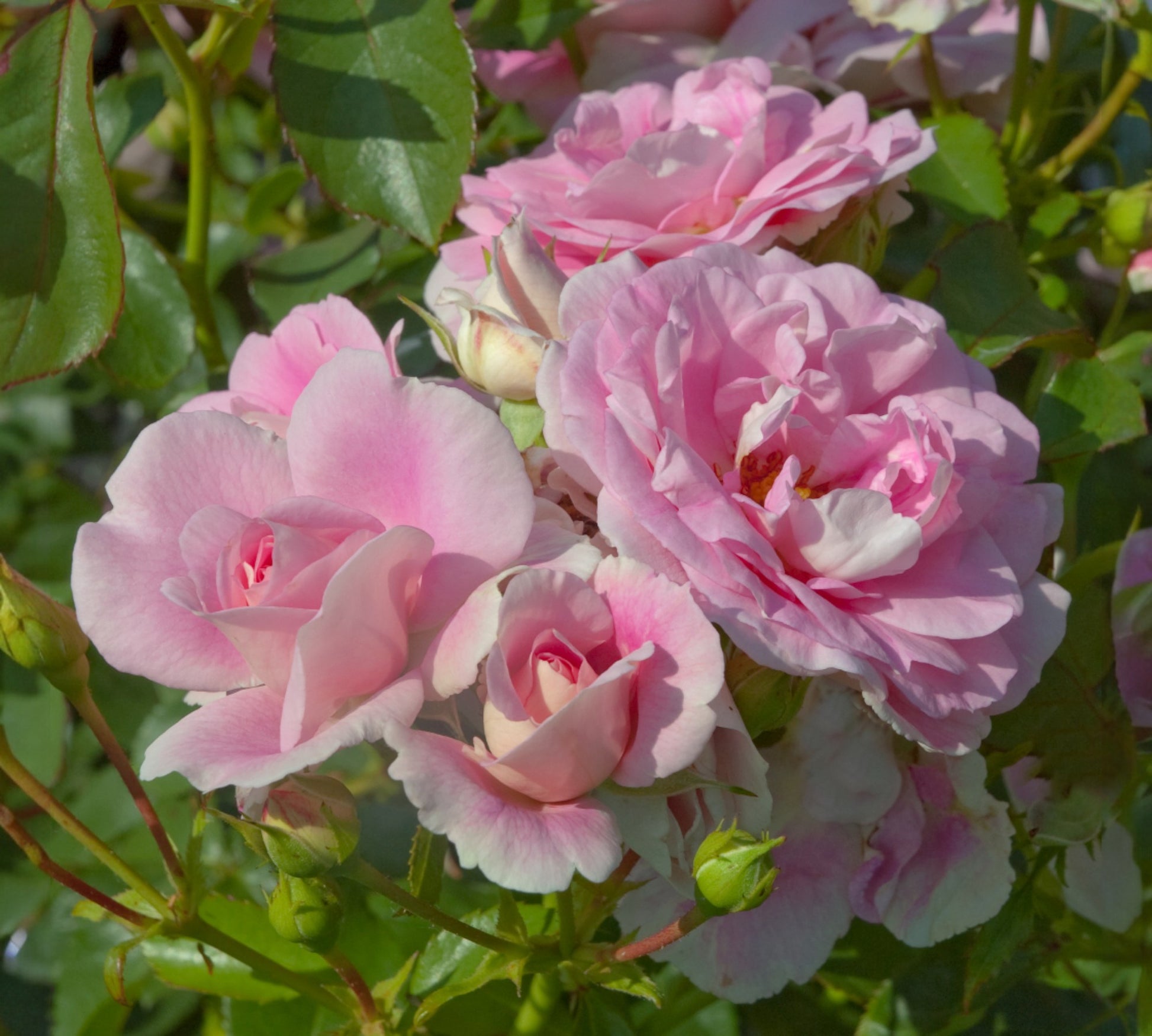 La rosa "Bonica" (in particolare la Bonica 82) è una rosa paesaggistica creata da Meilland nel 1982, molto apprezzata per la sua rusticità, resistenza alle malattie e continua rifiorenza, che la rende ideale per bordure, aiuole e siepi. I suoi fiori sono di colore rosa pallido, raccolti in mazzi, mentre la pianta adulta sviluppa un portamento compatto e cespuglioso con un fogliame verde scuro lucido. Dopo la fioritura, produce anche delle bacche decorative in autunno.