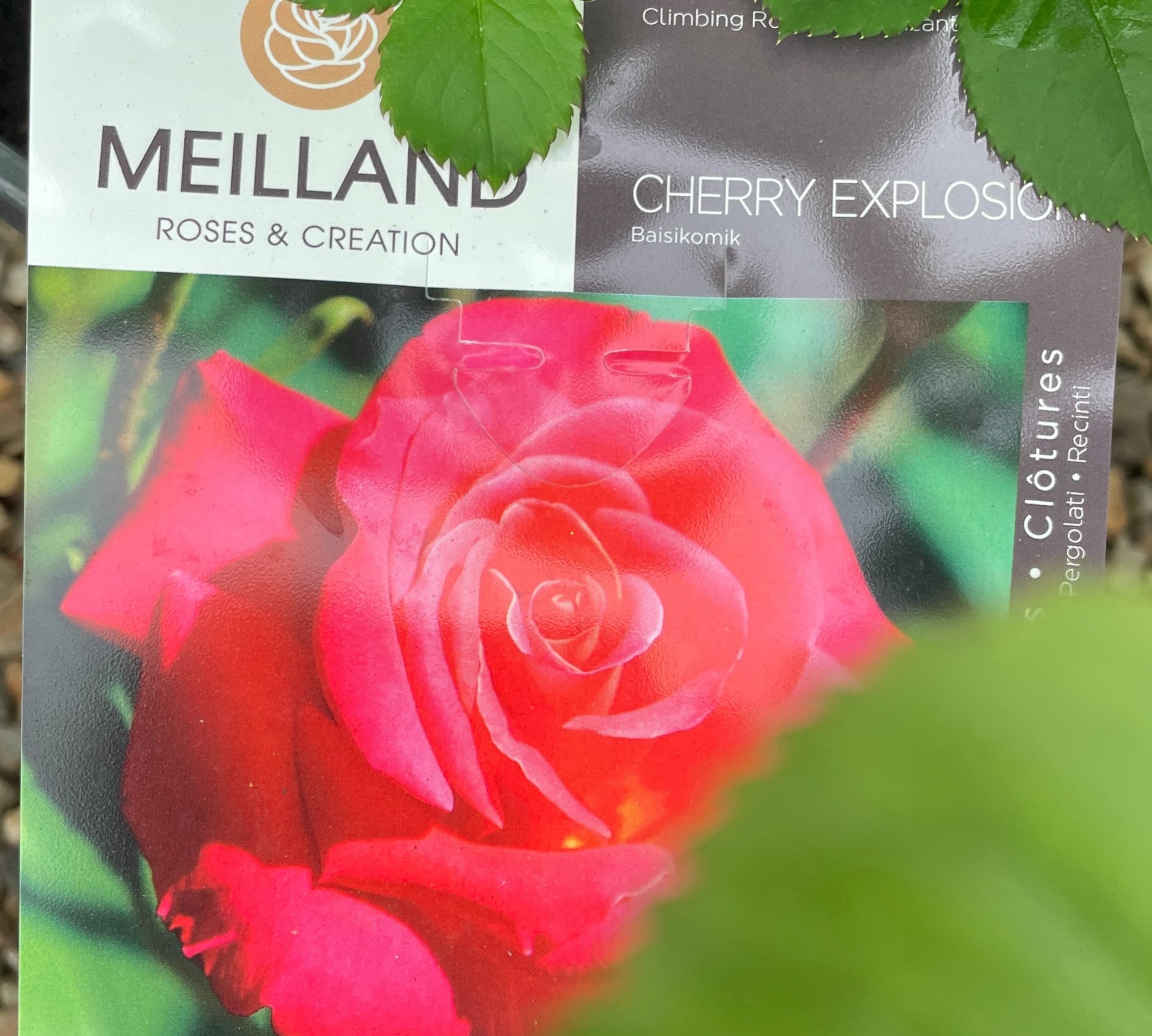 La Rosa 'Cherry Explosion®' (Baisikomik) è una rosa rampicante/arbusto vigoroso con fiori a forma di coppa, diametro di 9 cm, di colore rosso maraschino fino al rosa corallo, con un delizioso profumo di anice. Raggiunge un'altezza di circa 300 cm e si adatta a essere coltivata su muri, pergolati, come grande cespuglio o in vasi, grazie alla sua eccellente resistenza alle malattie e alla crescita abbondante e costante.