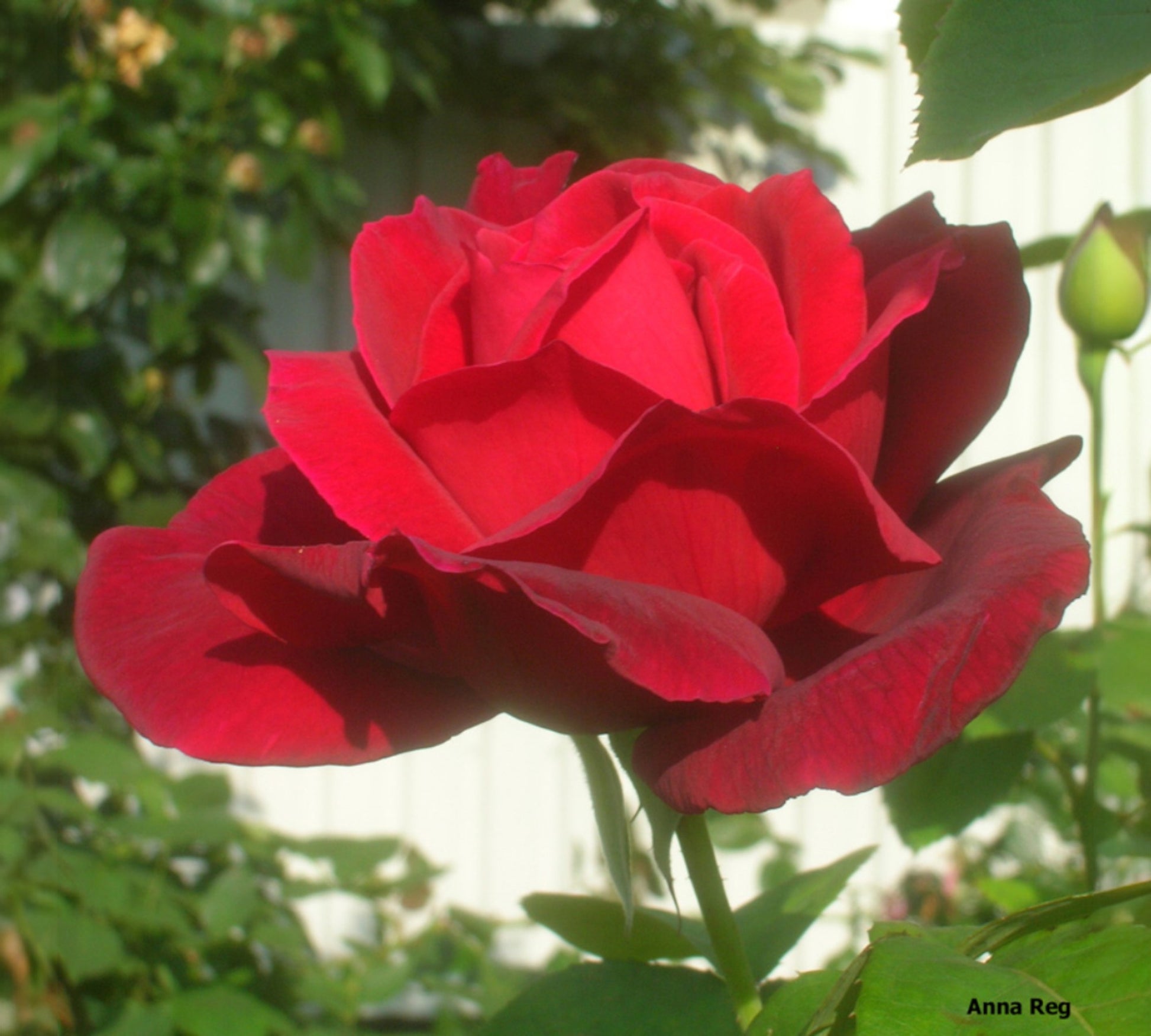 Fiori: Grandi, doppi, vellutati, di colore rosso scuro cremisi con circa 45-50 petali.