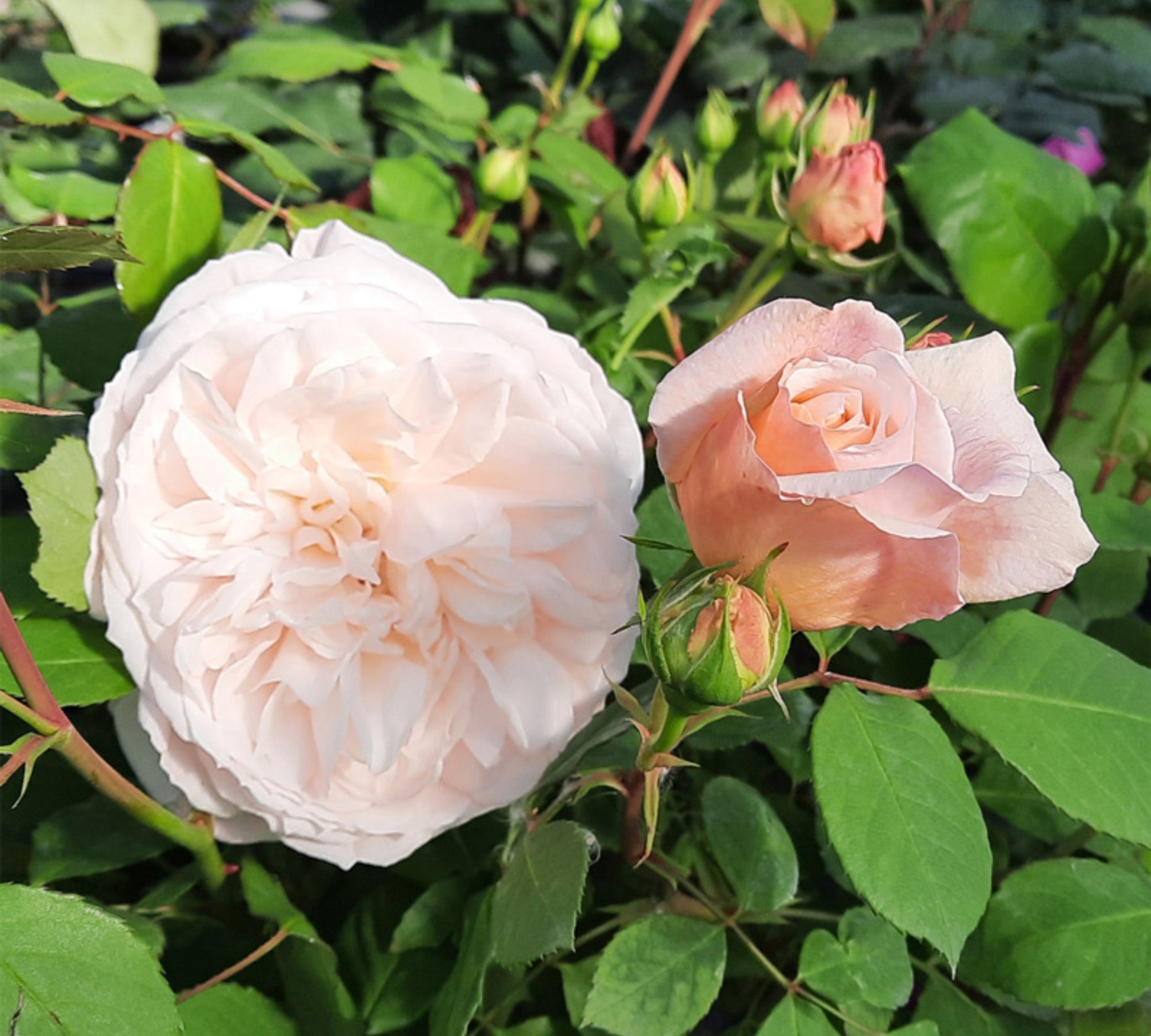 Rosa Irene Watts è una varietà antica e romantica, appartenente al gruppo delle rose floribunda, introdotta nel 1895. Questa rosa si distingue per i suoi fiori doppi e riccamente stratificati, di un delicato colore rosa albicocca che sfuma verso il bianco crema man mano che i petali si aprono