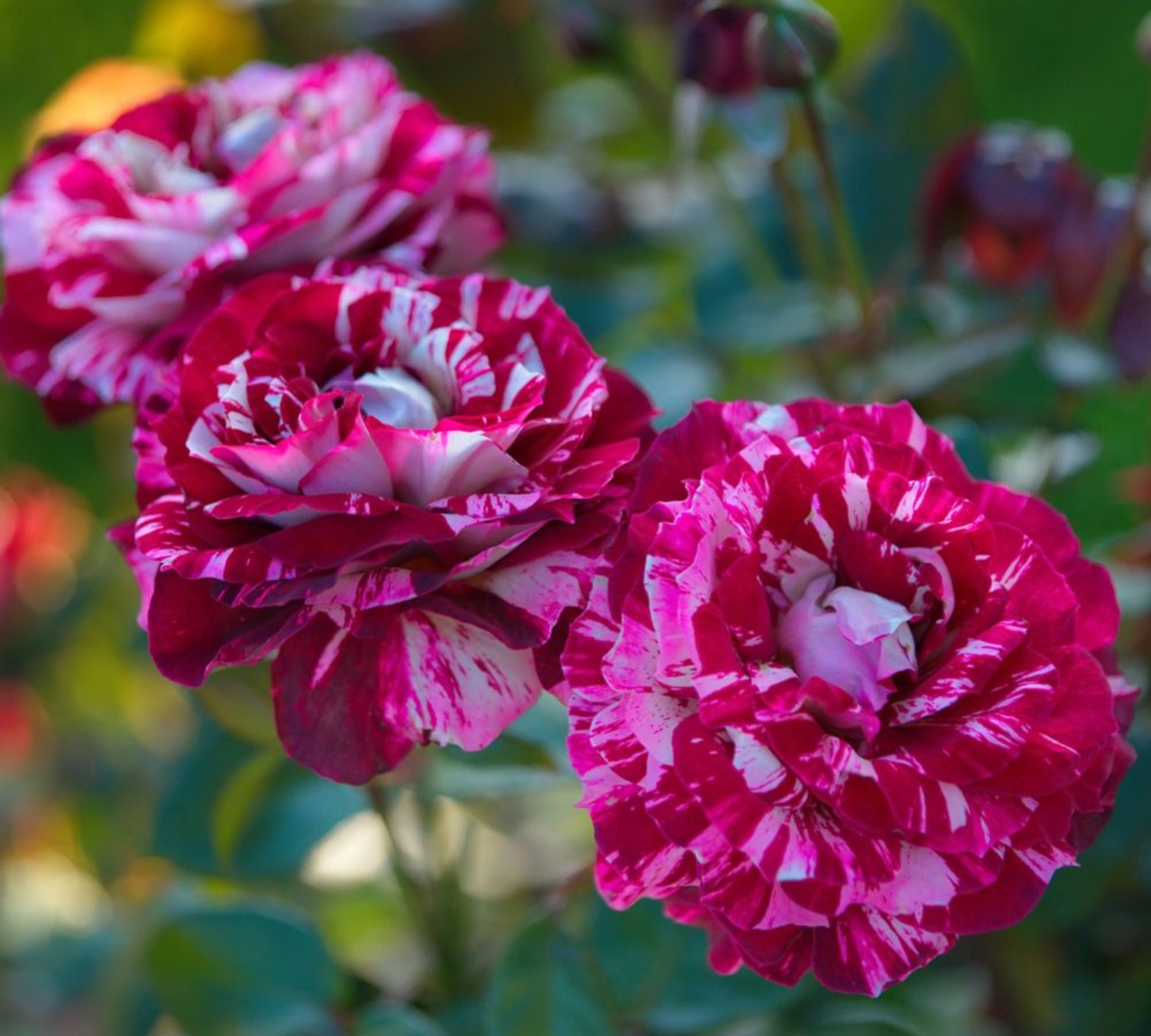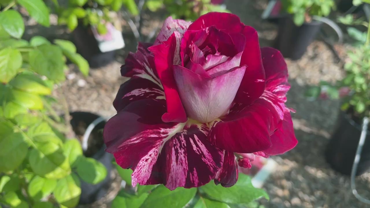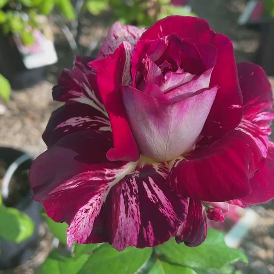 La Rosa Julio Iglesias® è un ibrido di Tea creato da Meilland nel 2007, famosa per i suoi grandi fiori striati di rosso e bianco/panna e il profumo intenso con note di agrumi e verbena. Ha un portamento cespuglioso, rifiorente e decorativo, con fogliame verde scuro e lucido, ed è adatta sia alla coltivazione in vaso che in piena terra.