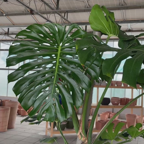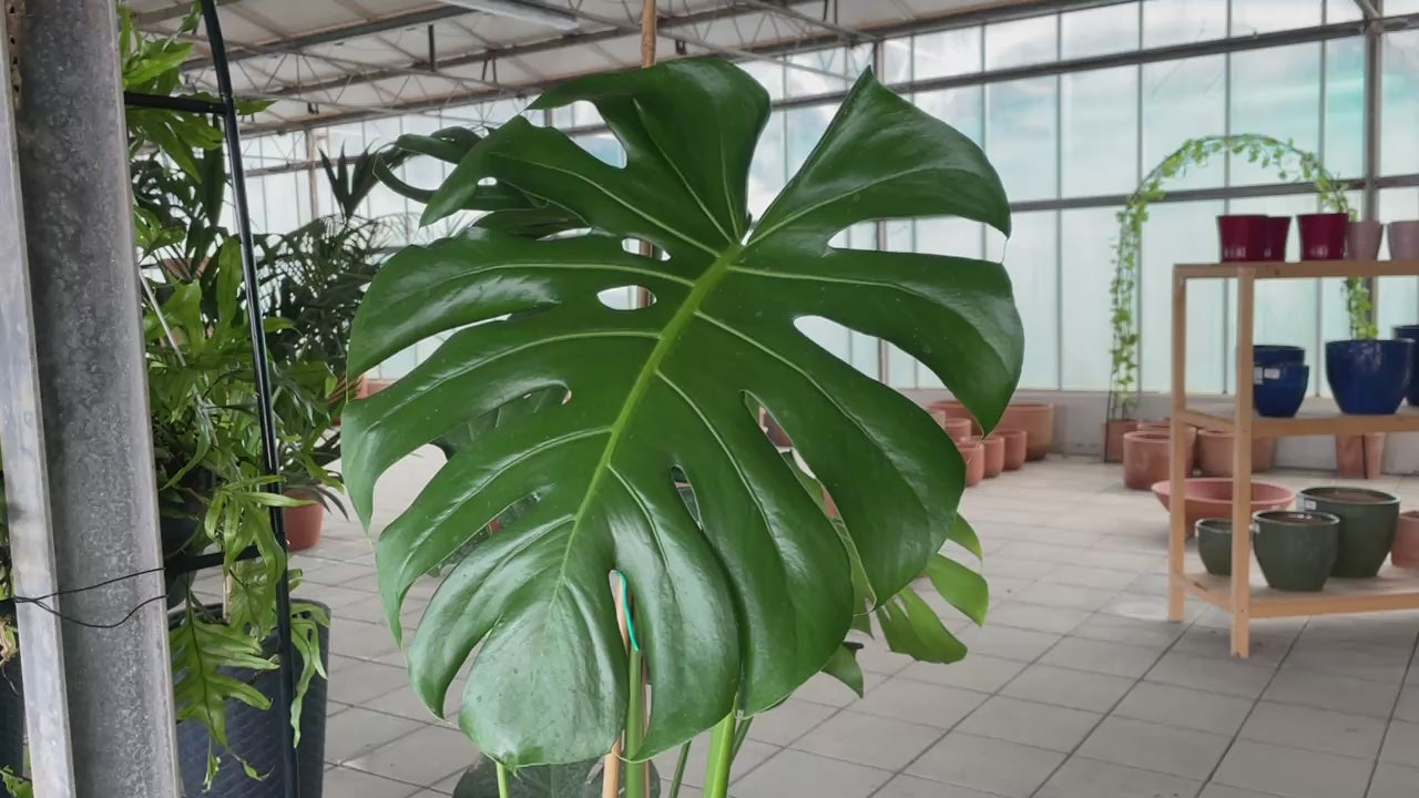 Foglie: Grandi, lucide e di un brillante verde scuro, diventano progressivamente più ampie e perforate (fenestrate) man mano che la pianta cresce, formando delle caratteristiche aperture e fessure. Le foglie giovani sono intere e a forma di cuore.