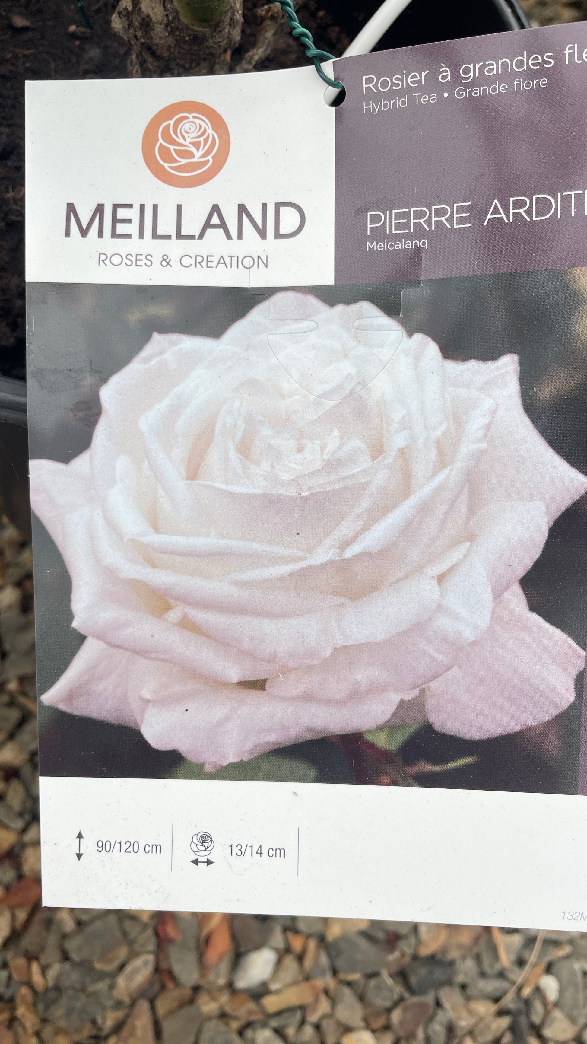 La Rosa Pierre Arditi è un ibrido di tè premiato, noto come una delle migliori rose bianche, con fiori grandi, a coppa, composti da circa 95 petali di un candido colore bianco. La pianta ha un portamento cespuglioso, vigore, e un fogliame verde scuro brillante, con un'ottima resistenza a gelo e malattie. Produce un intenso profumo fruttato di pesca, pera e frutti esotici, e fiorisce abbondantemente da primavera fino ai geli, rendendola ideale anche per fiori recisi.