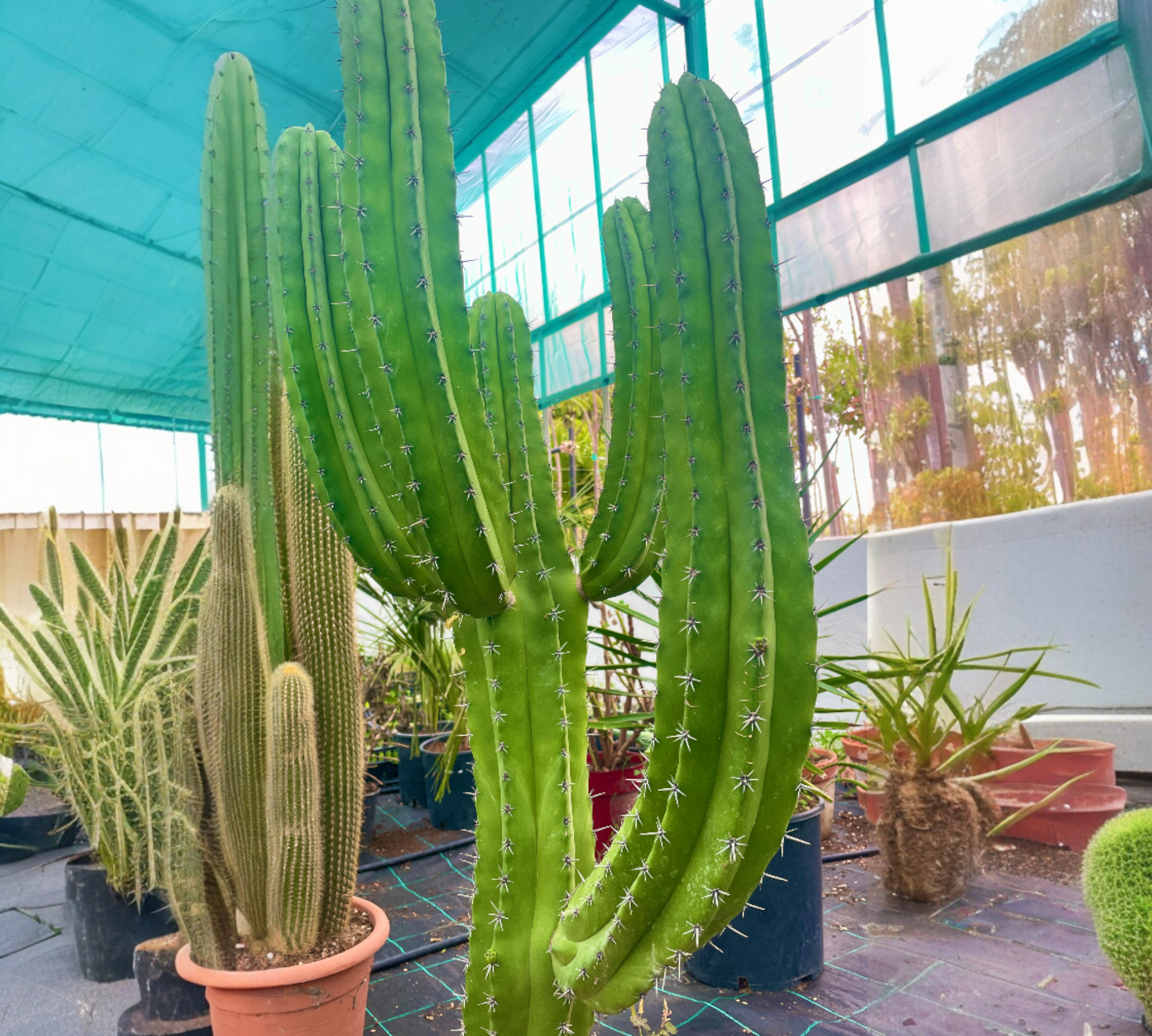 Forma e dimensioni: Cactus colonnare, simile a un albero, con un tronco corto e rami ricurvi. Può raggiungere un'altezza di 3,6-4,5 metri, e talvolta forma un fusto più definito.