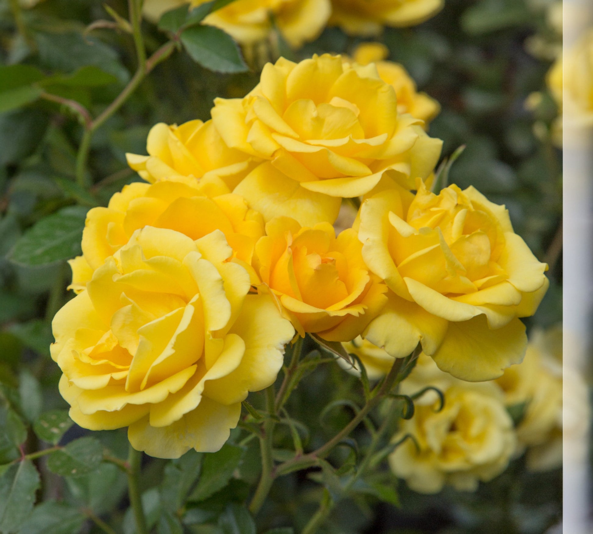La Rosa Rayon de Soleil è una rosa tappezzante/arbustiva gialla selezionata da Meilland nel 2016, apprezzata per la sua fioritura continua e abbondante dalla primavera all'autunno, e per la sua elevata resistenza alle malattie. I suoi fiori, di medie dimensioni e a coppa, hanno petali giallo dorato luminoso e un fogliame verde scuro brillante. La pianta ha un portamento compatto e cespuglioso, raggiungendo circa 70-100 cm di altezza, ed è ideale per aiuole, bordure e anche vasi.