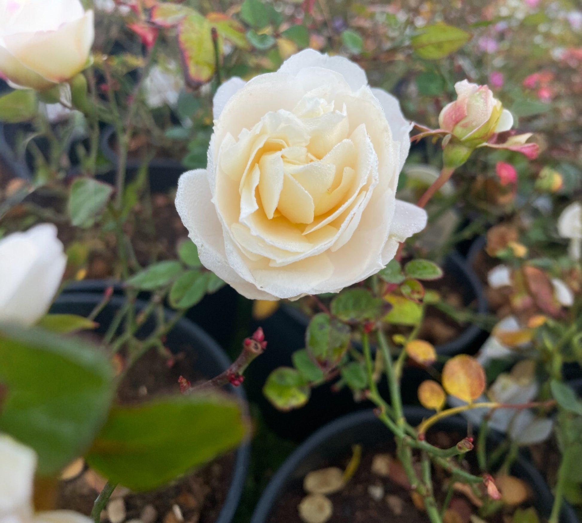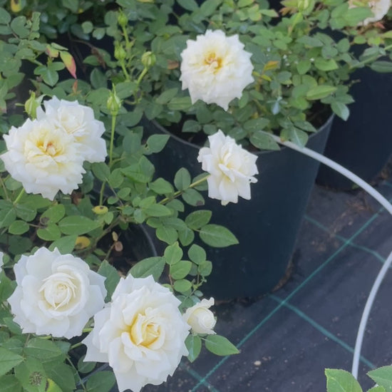 Rosa 'Snow Meillandina': This is a miniature rose with white, double flowers, created by Meilland in France.