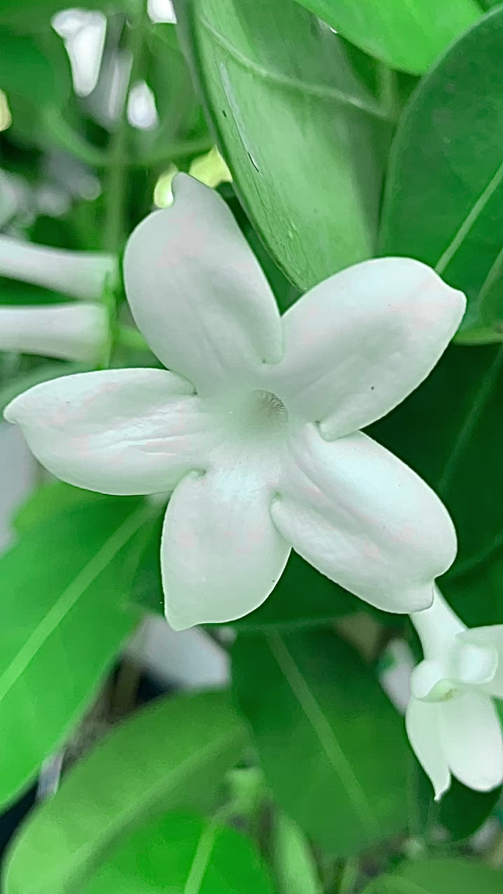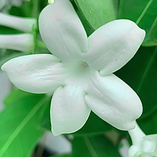 - Fioritura spettacolare: Fiori bianchi cerosi a forma di stella, profumatissimi