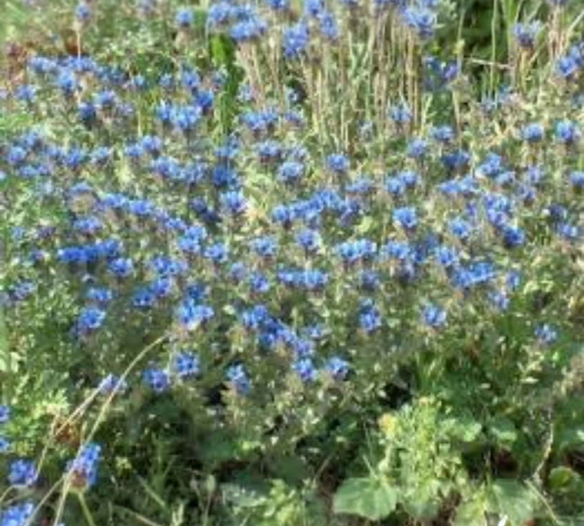Fioritura: Prolungata, da primavera all'autunno, con fiori piccoli e tubolari di colore azzurro pallido o blu-lilla.